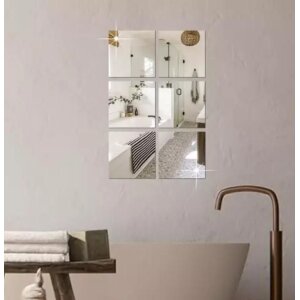4 Big Square Silver 3D Acrylic Mirror Wall Sticker