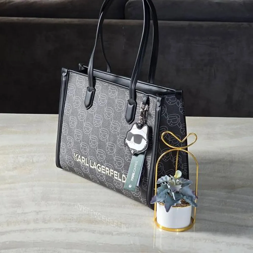 Luxury Karl Lagerfeld Shoulder Bag Textured Ikon Structured with Dust Bag For Women