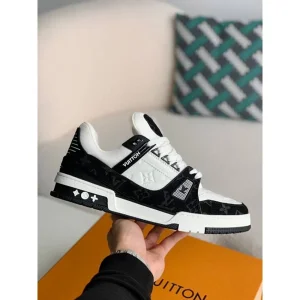 Louis Vuitton Trainer White Black With All Accessories Shoes