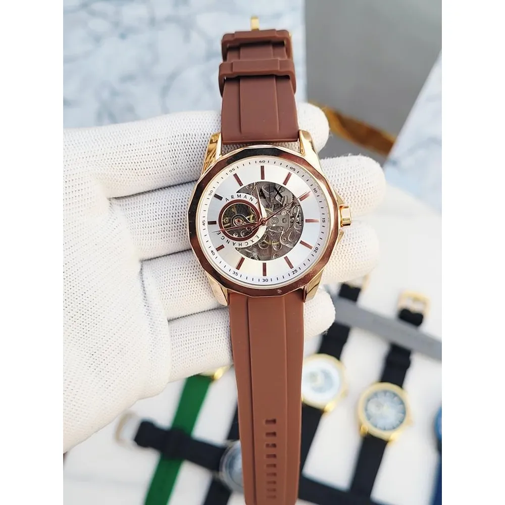 Luxury Armani Echange Automatic Watch White Brown For Men
