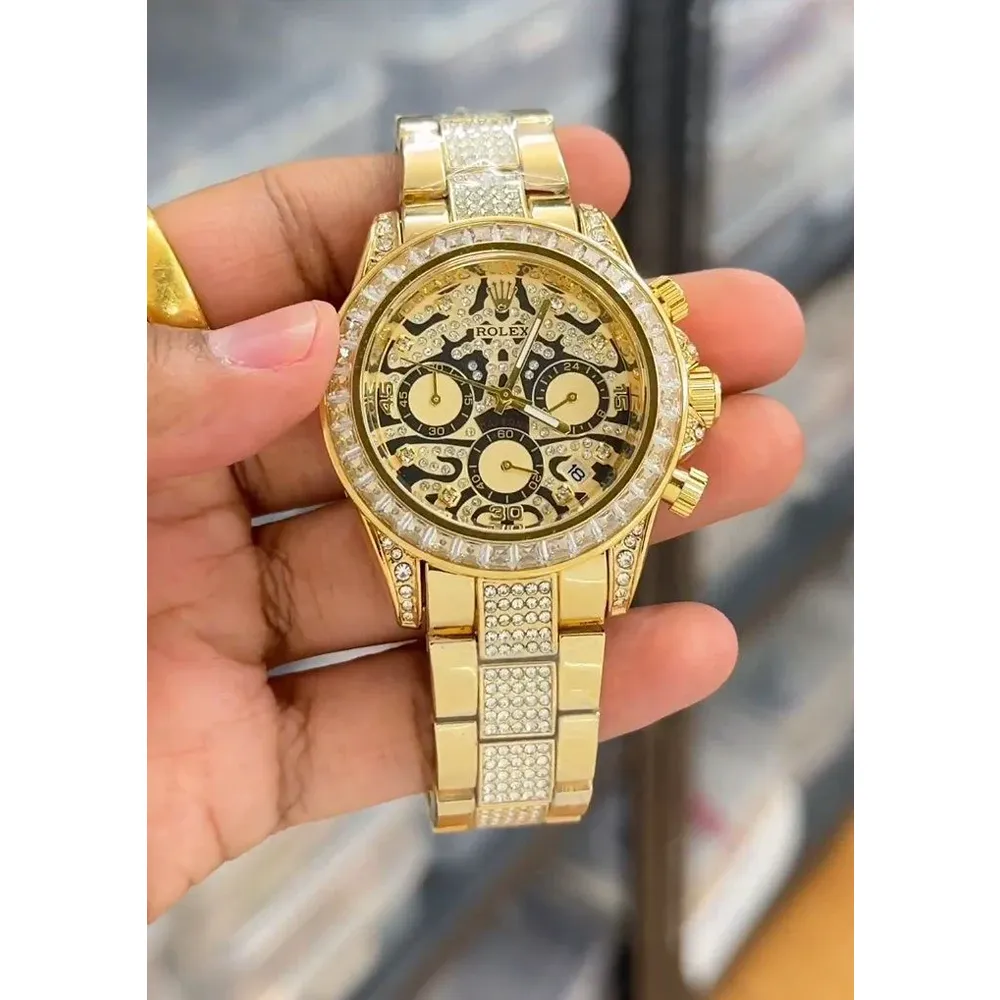 This Rolex Oyster Tiger Eye model comes with complete original-style branding on the dial and strap, along with a secure branding logo lock, adding authenticity to its premium design. It is also water-resistant, making it suitable for everyday splashes and light water contact.