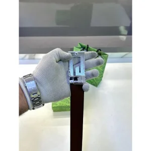 Premium Gucci Automatic Lock Belt Silver For Men