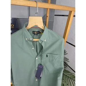 The shirt is made from a premium cotton-blend fabric that ensures breathability, softness, and comfort throughout the day. Its weave is designed to resist wrinkles and retain shape even after repeated washes. The material is lightweight yet durable, offering easy movement and a smooth drape.