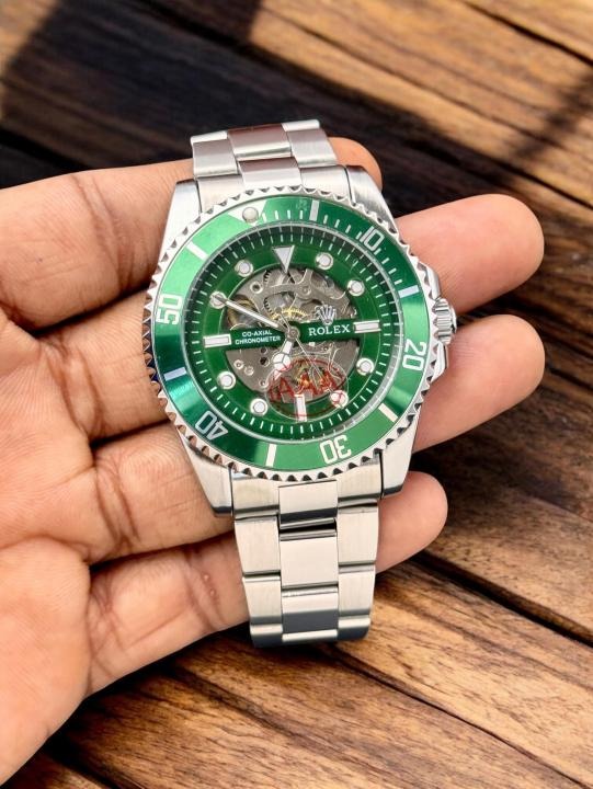 Rolex Automatic Chronometer Watch Silver Green For Men