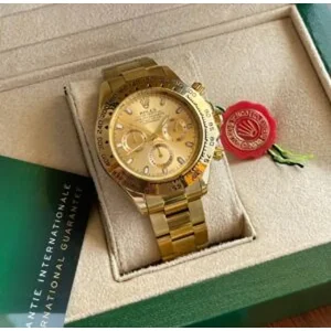The Rolex Daytona Full Golden Edition is a standout timepiece built for those who value luxury, performance, and elite craftsmanship. Designed with a bold 43mm full gold matte metal dial, this watch makes a powerful impression at first glance. Its premium build quality, elegant finish, and iconic Daytona styling ensure it remains the center of attention, whether you’re attending meetings, special events, or casual outings.