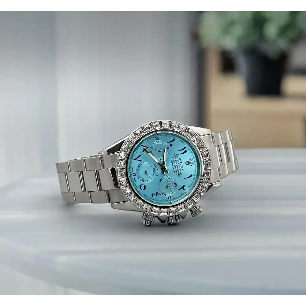 If you want a premium luxury watch that instantly stands out and brings the Rolex prestige to your wrist, the Oyster Perpetual Daytona “Unique Version” Arabic Ice Blue Dial is the perfect choice.